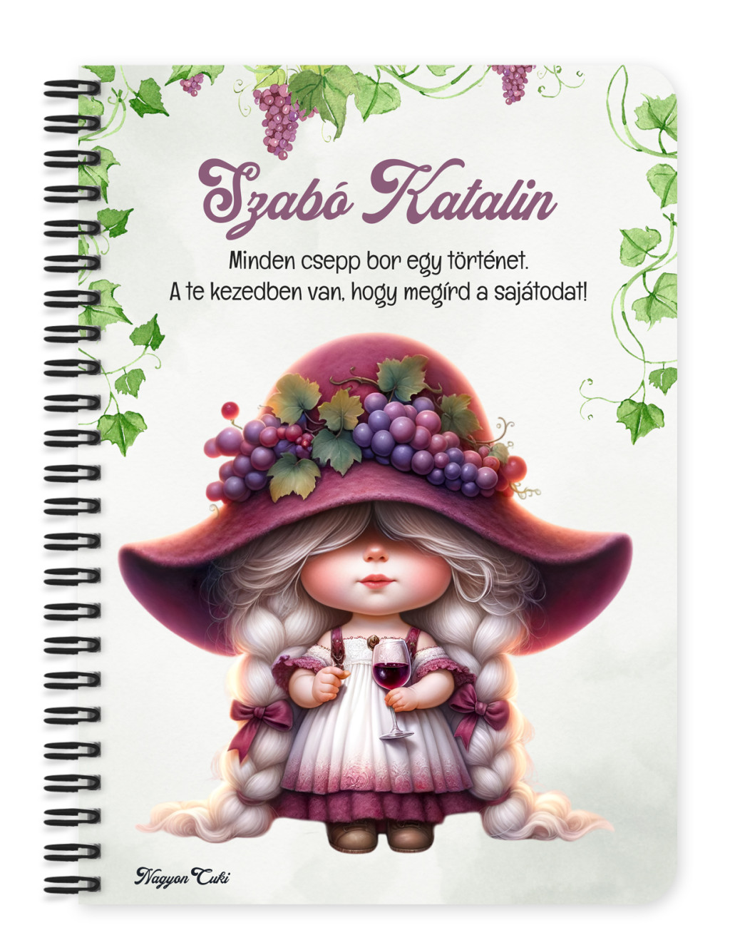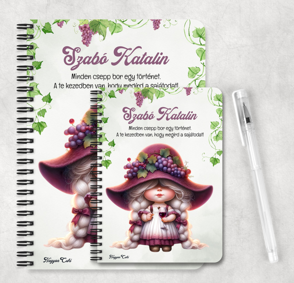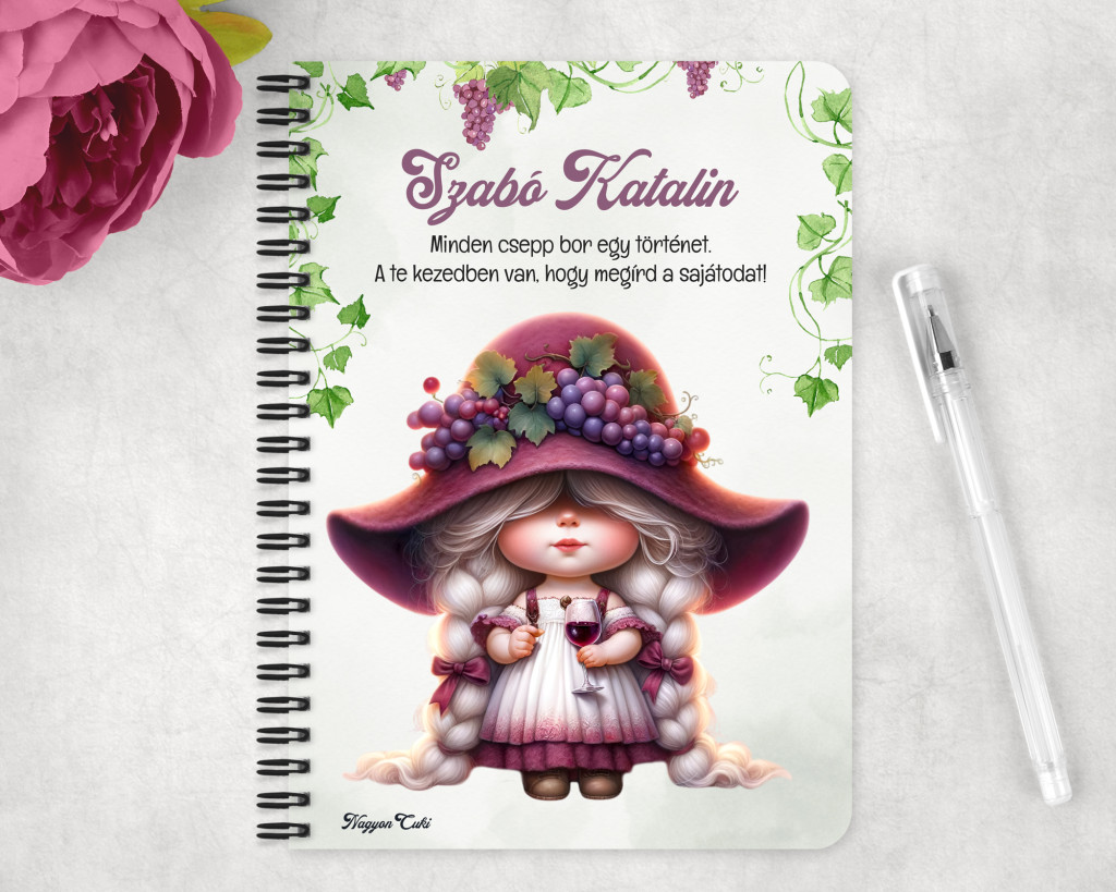 Személyre szabható - Szépséges borász manó lány mintás füzet mintás Füzet | Egyedi Ajándék Borászoknak & Borrajongóknak & Személyes Napló | nagyoncuki.hu