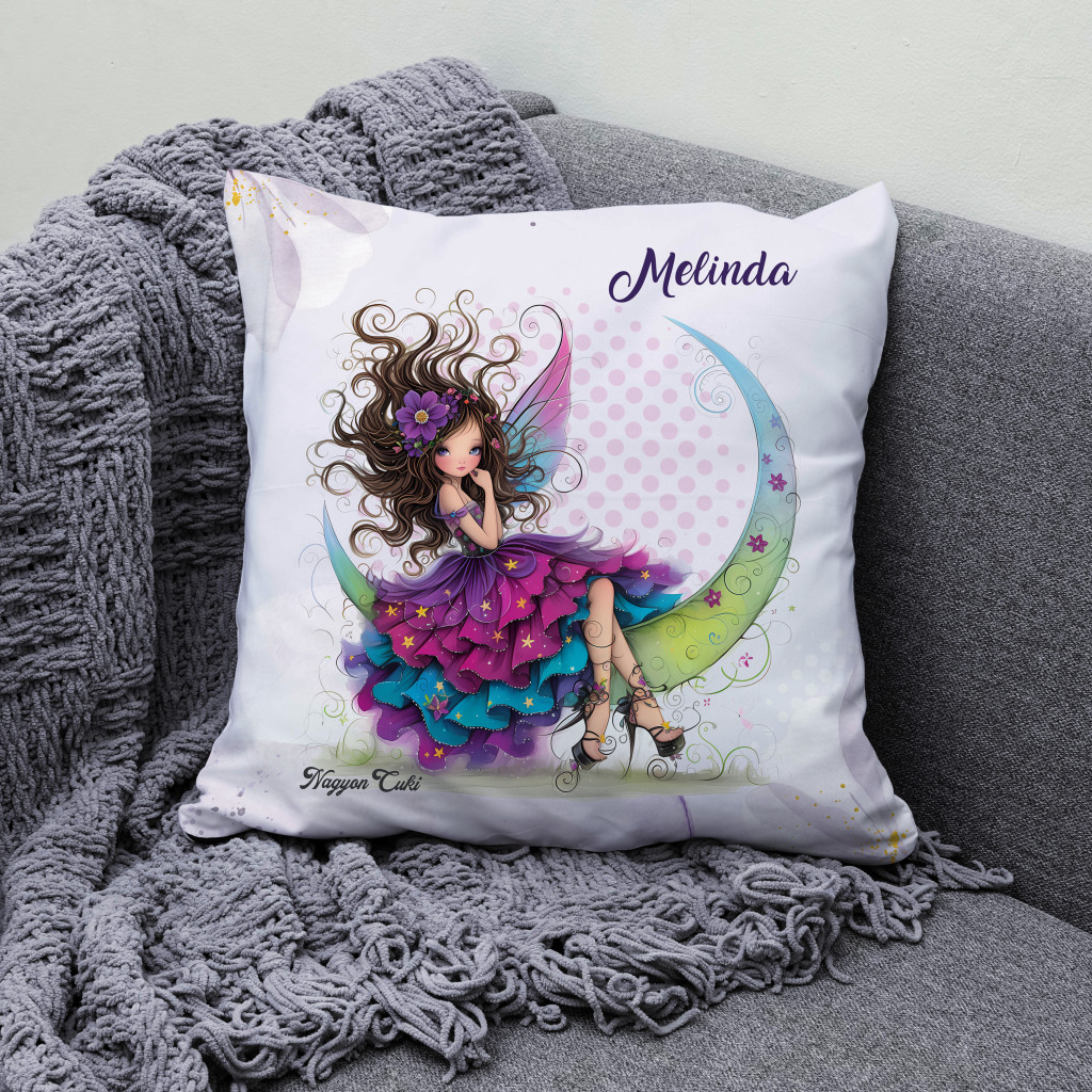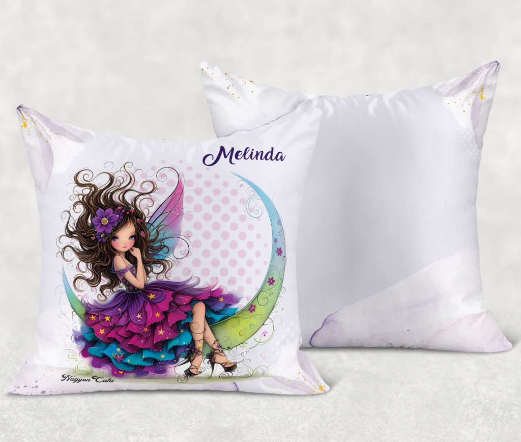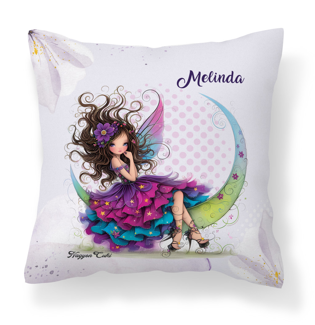 Névvel kérhető - Szépséges lila virágos tündér és a hold mintás Párna | Egyedi Ajándék Nőknek & Személyes Tündéres Dekoráció | nagyoncuki.hu