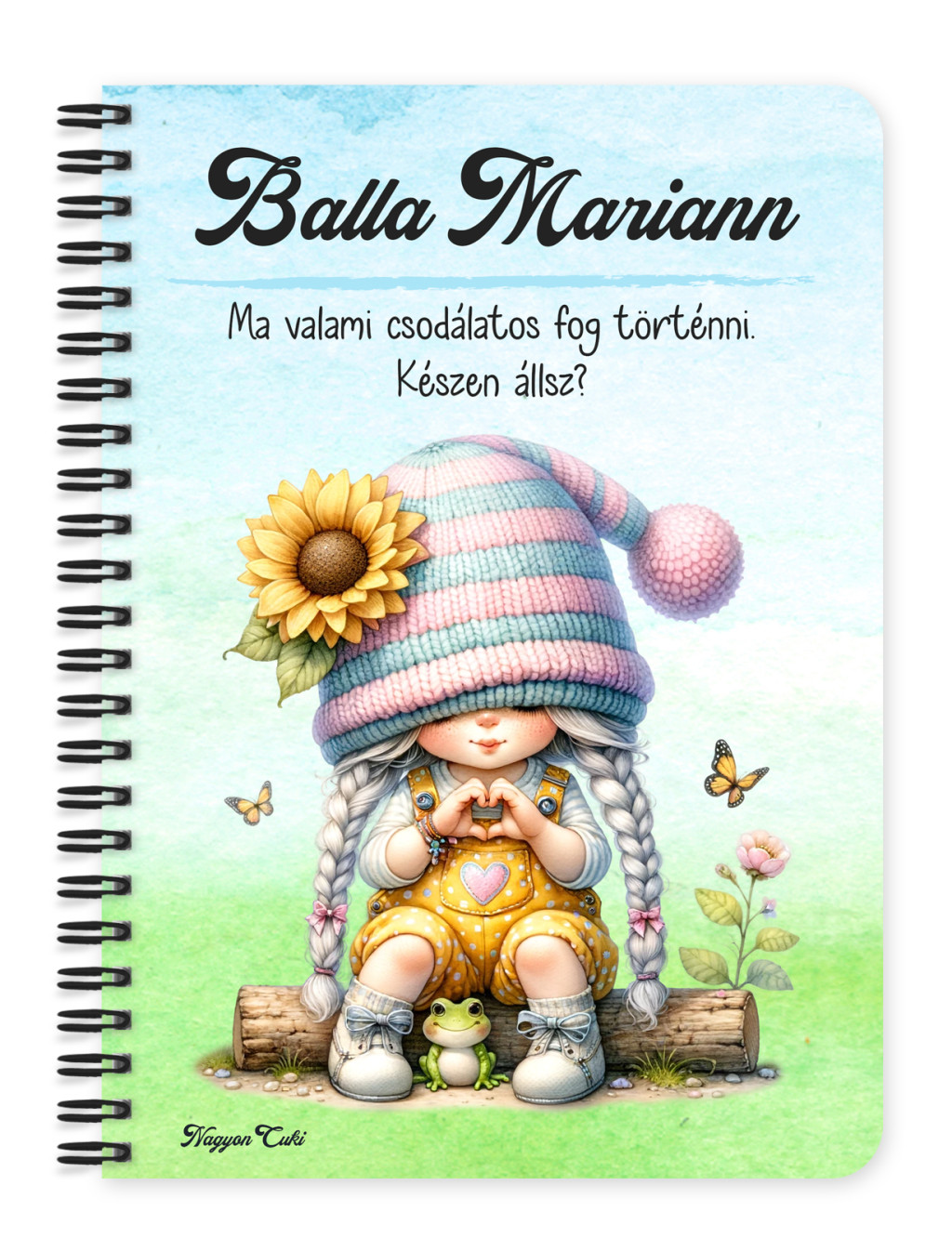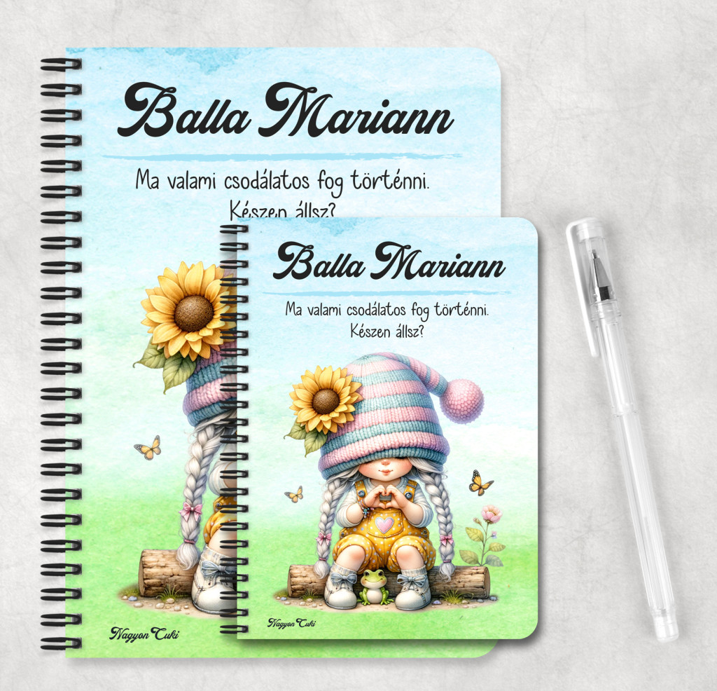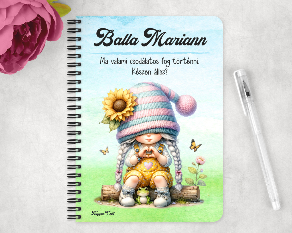 Névvel & Idézettel Kérhető Szívecskés napraforgós manó lány mintás Füzet | Legjobb ajándék Nőknek | nagyoncuki.hu