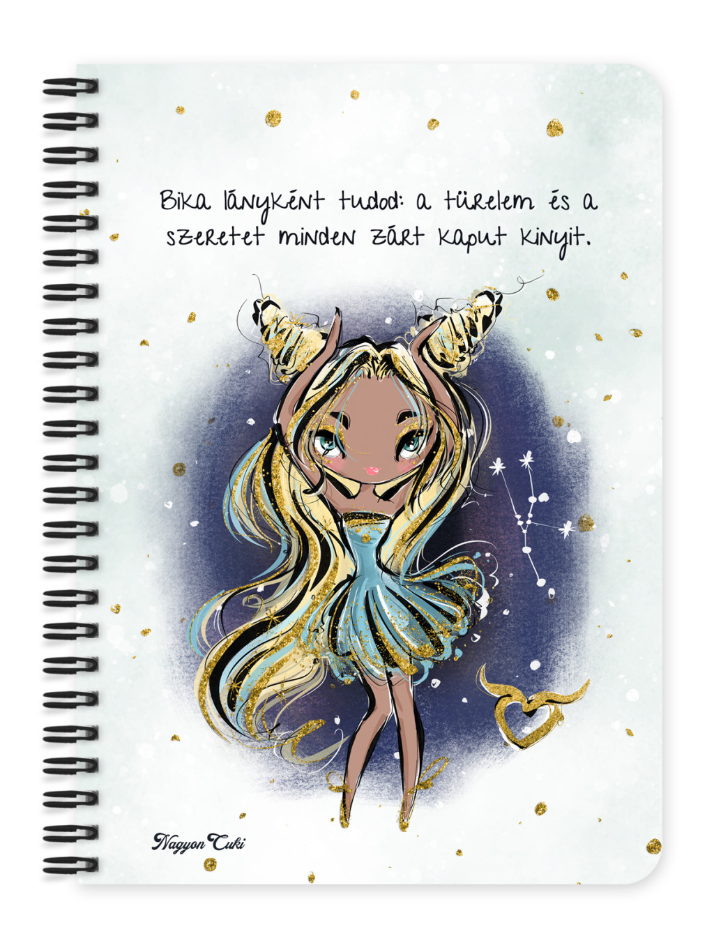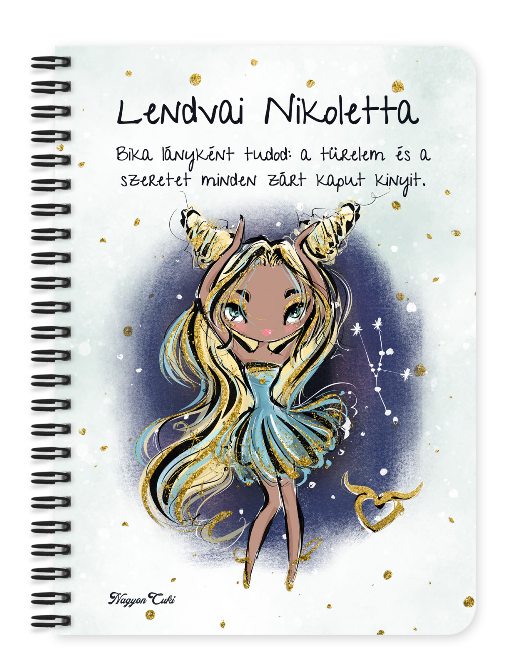 Személyre szabható - Szőke hajú Csini Bika lány mintás Zodiákus Füzet | Egyedi Horoszkópos Ajándék & Névre szóló Jegyzetfüzet | nagyoncuki.hu