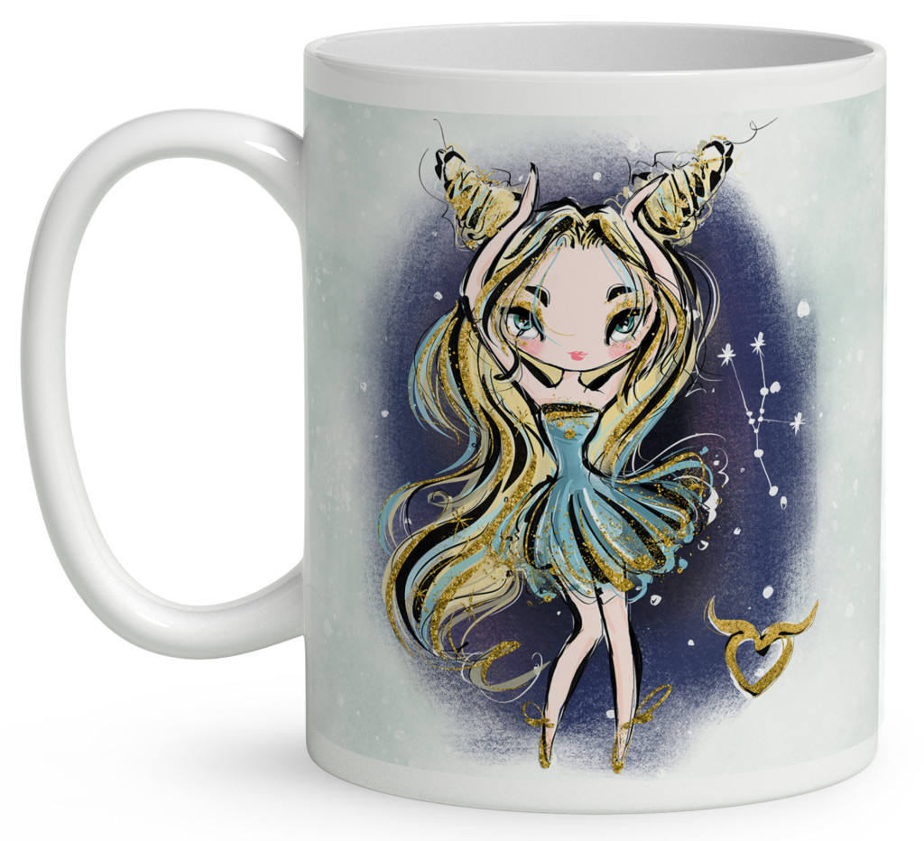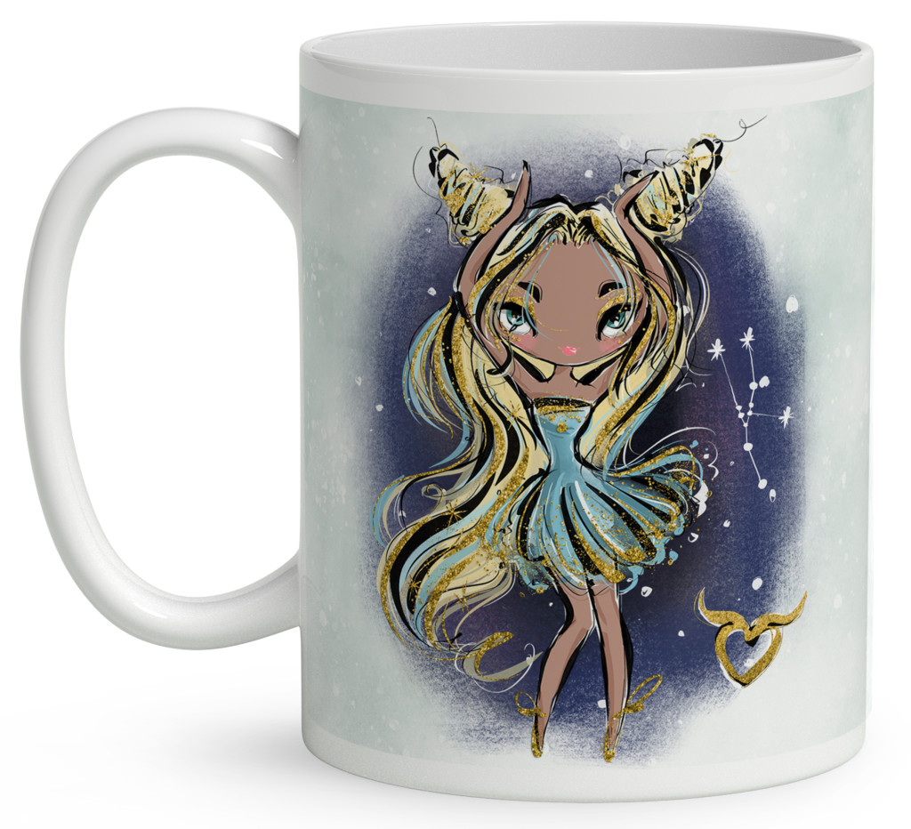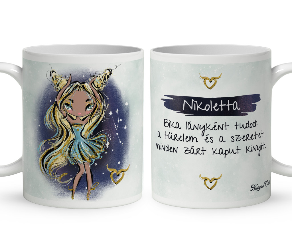 Személyre szabható - Szőke hajú Csini Bika lány mintás Zodiákus Bögre | Egyedi Horoszkópos Ajándék a Csillogás jegyében | nagyoncuki.hu