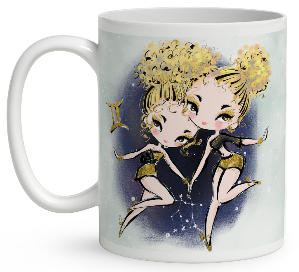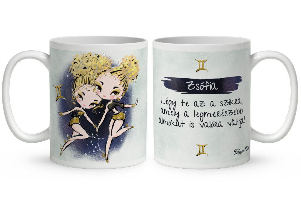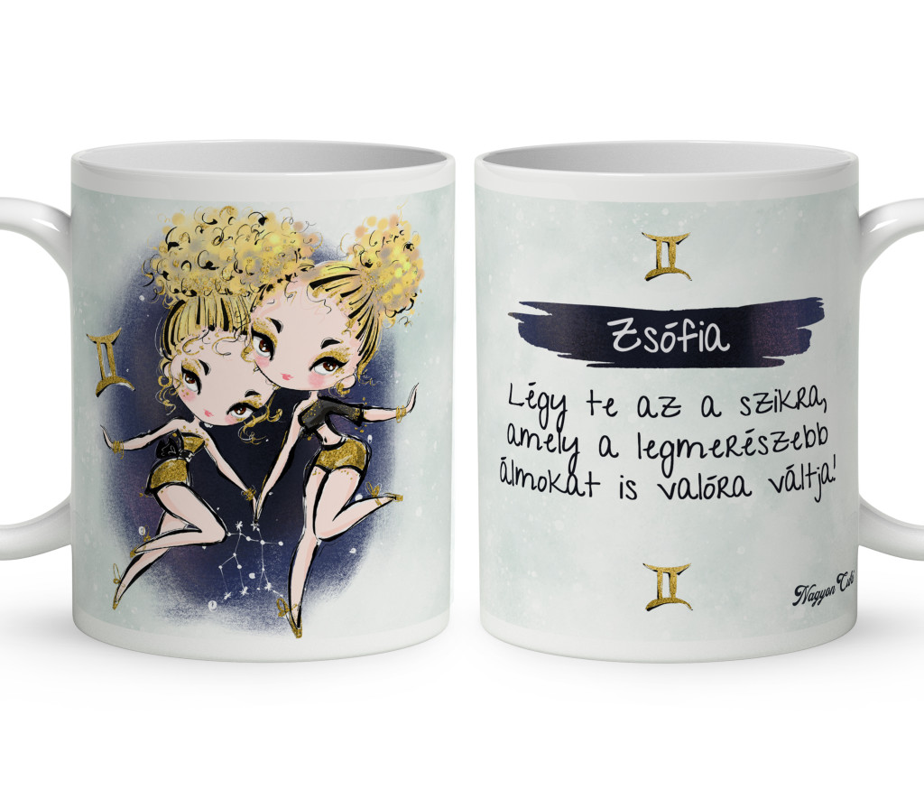 Személyre szabható - Szőke hajú Csini Ikrek lány mintás Zodiákus Bögre | Egyedi Horoszkópos Ajándék a Csillogás jegyében | nagyoncuki.hu