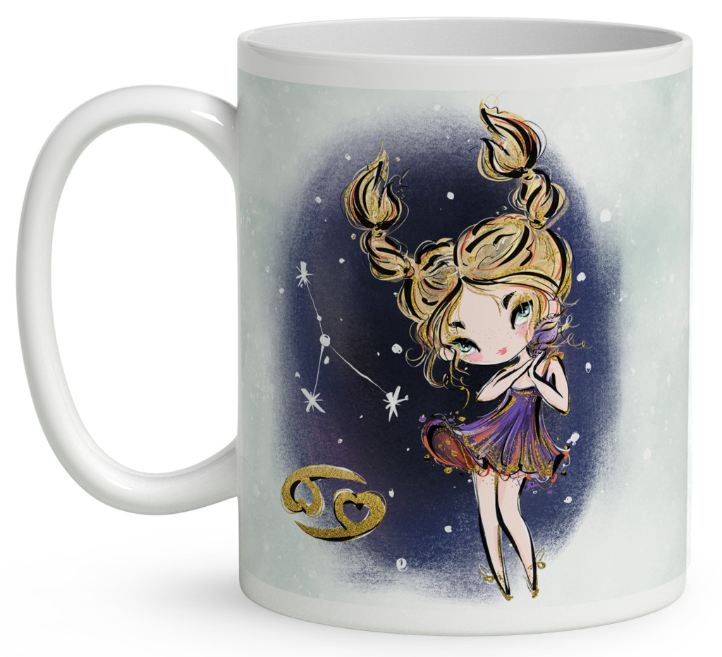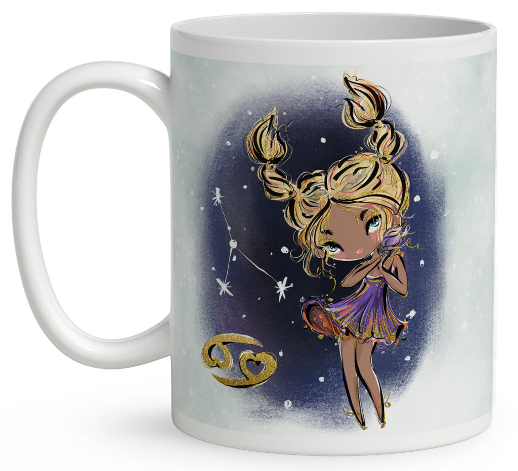 Személyre szabható - Szőke hajú Csini Rák lány mintás Zodiákus Bögre | Egyedi Horoszkópos Ajándék a Csillogás jegyében | nagyoncuki.hu