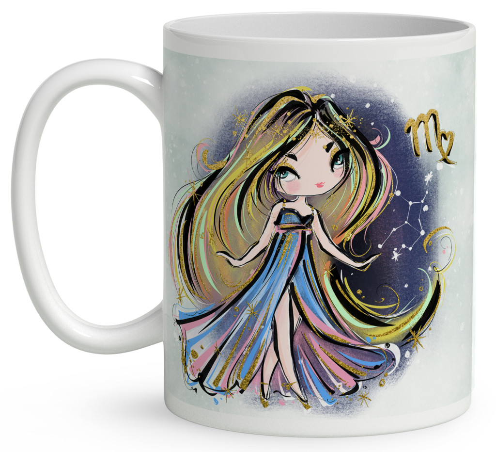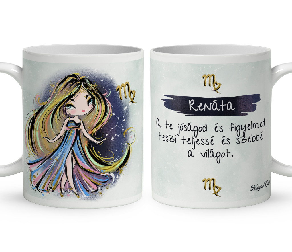 Személyre szabható - Szőke hajú Csini Szűz lány mintás Zodiákus Bögre | Egyedi Horoszkópos Ajándék a Csillogás jegyében | nagyoncuki.hu