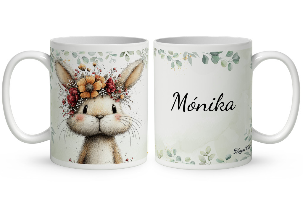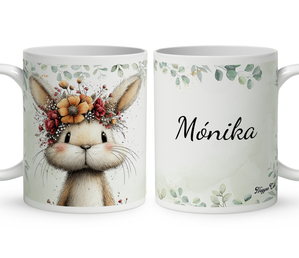 Miért válaszd ezt a névre szóló cuki tavaszi nyuszi mintás bögrét?
