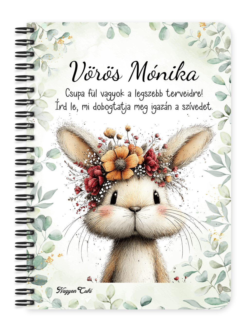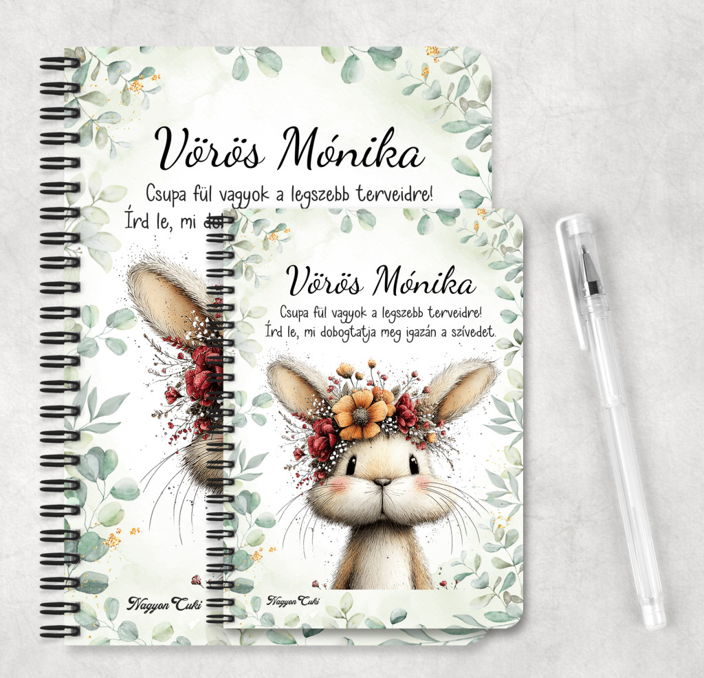 Vidd haza a tavasz frissességét! Rendeld meg most ezt az egyedi, névre szóló Cuki Tavaszi nyuszi mintás füzetet, és adj teret a legszebb gondolatoknak...mert mindenkinek jár egy kis cukiság.