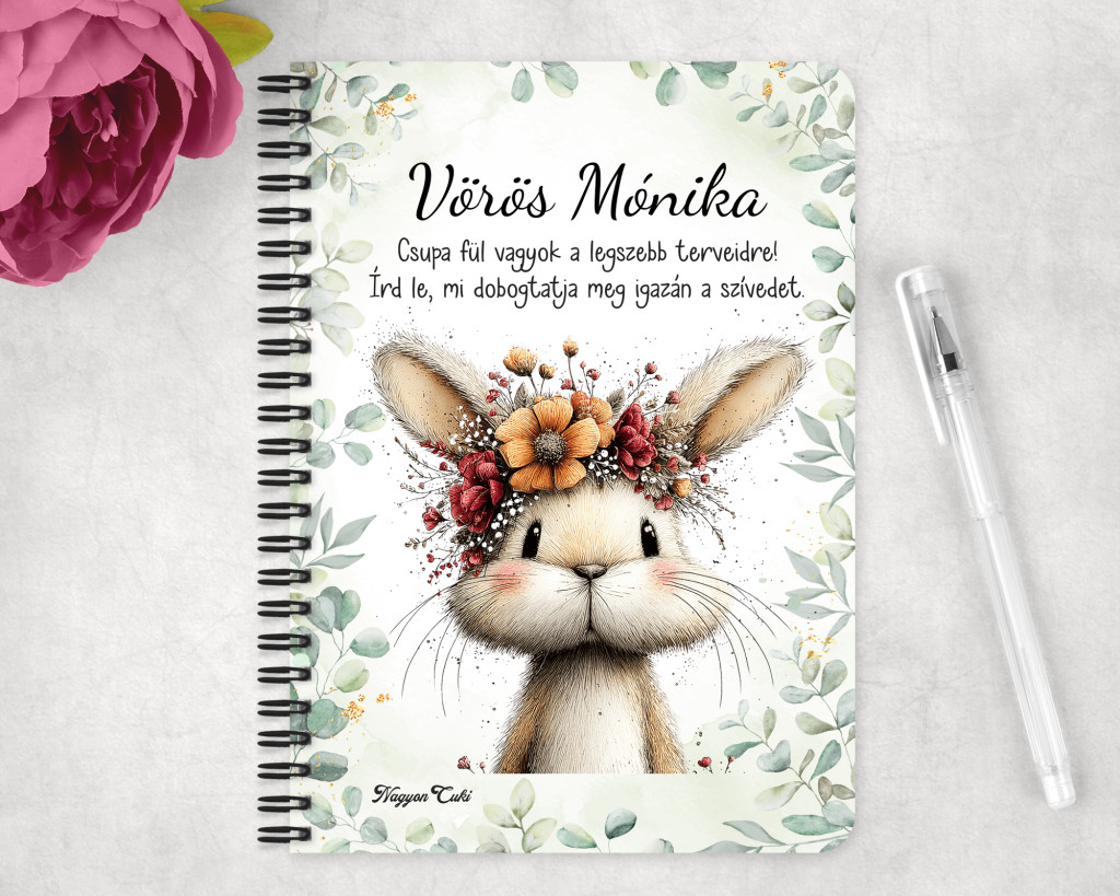 Névvel & Idézettel Kérhető - Tavasz hírnöke, a mezei nyuszi mintás Füzet / Napló | Névre Szóló Ajándék & Személyes Jegyzetfüzet | nagyoncuki.hu