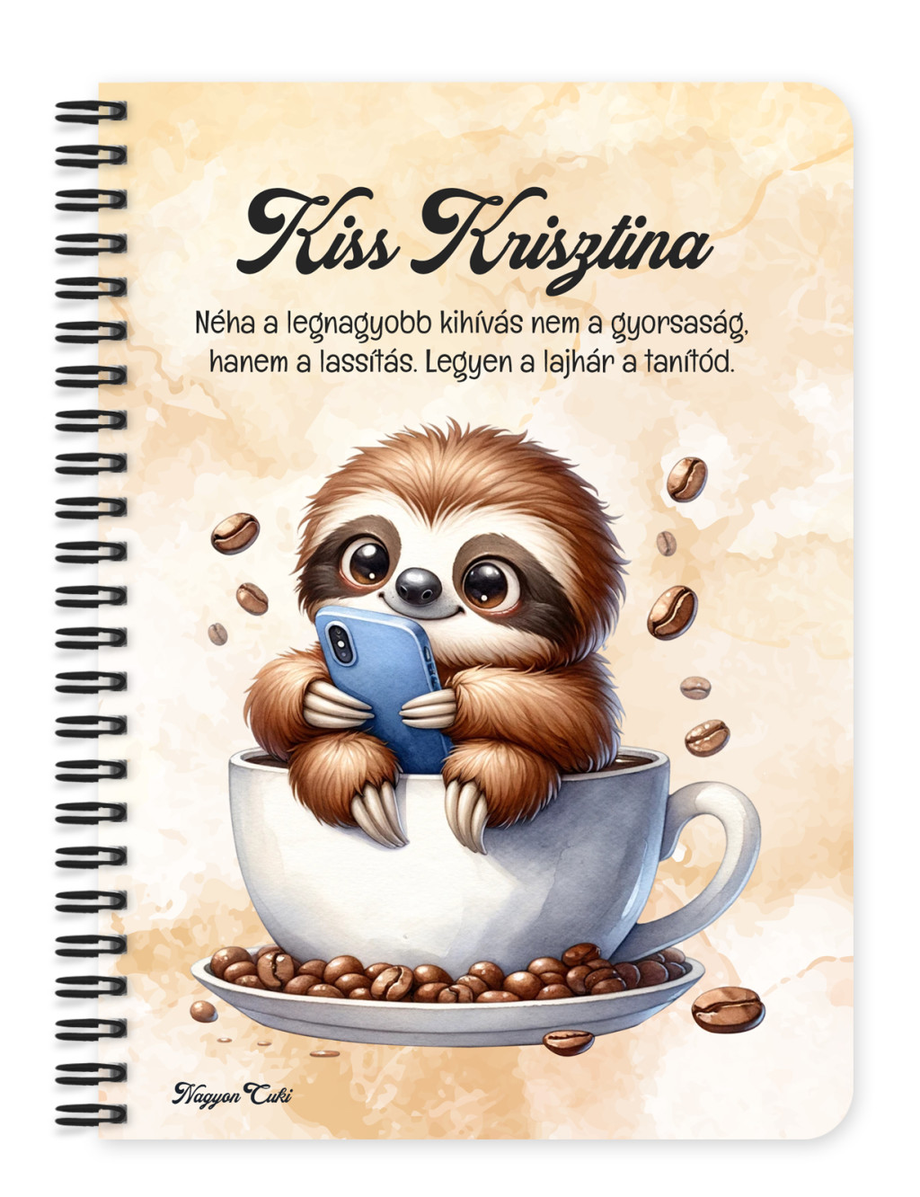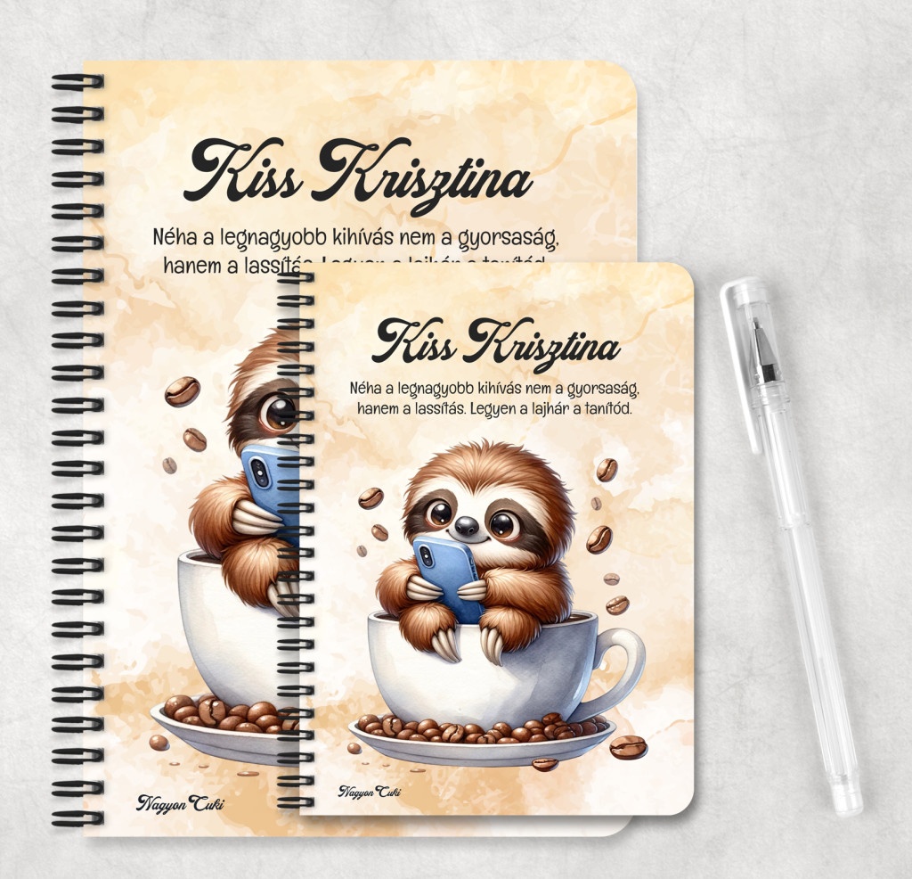 Névvel & Idézettel Kérhető Telefonozós Kávés lajhár mintás Füzet | Legjobb ajándék Nőknek & Személyes napló| nagyoncuki.hu