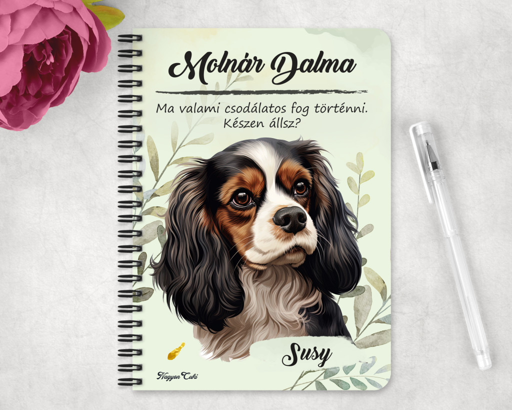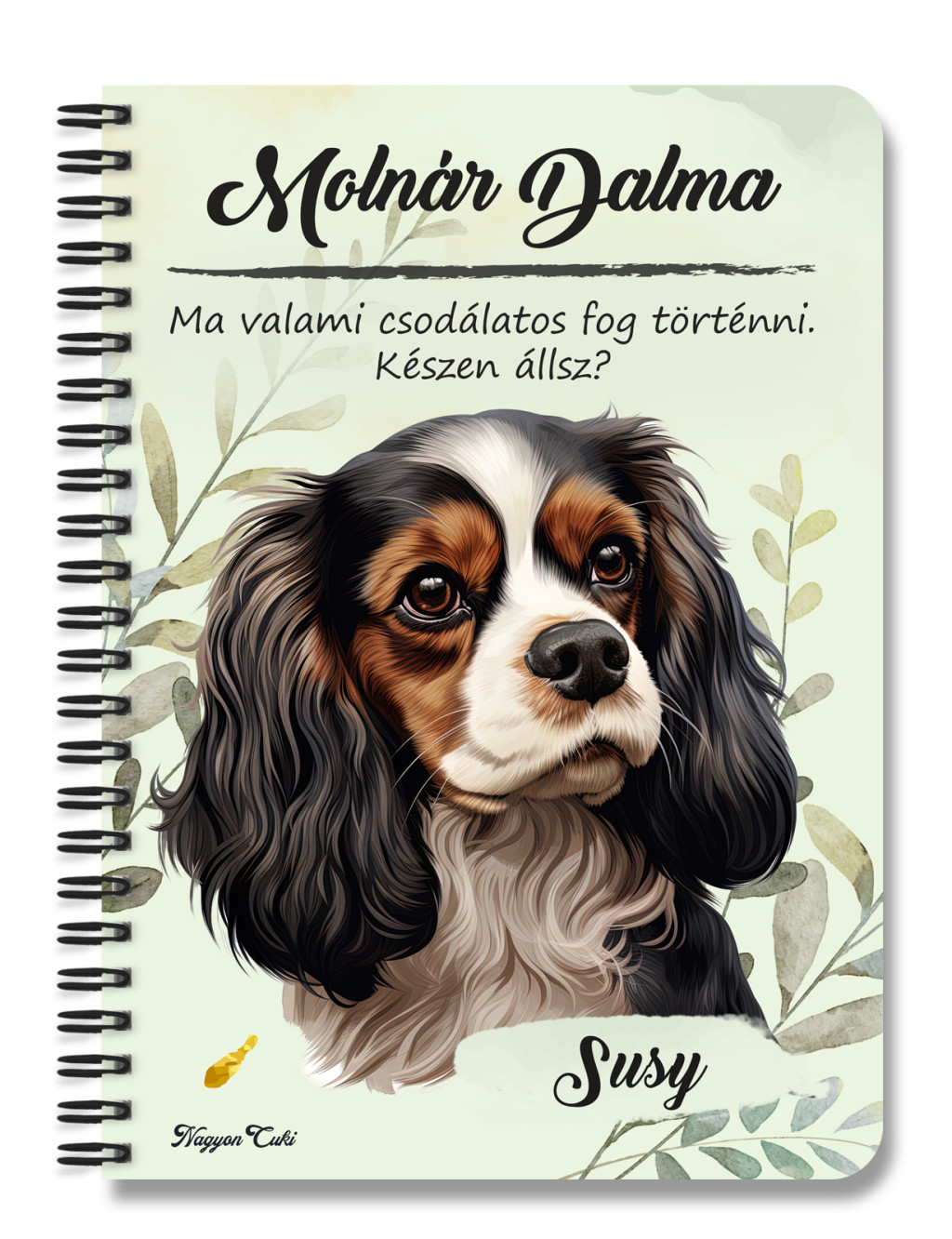 Miért válaszd ezt a névre szóló Trikolor Cavalier King Charles spániel kutyás füzetet?