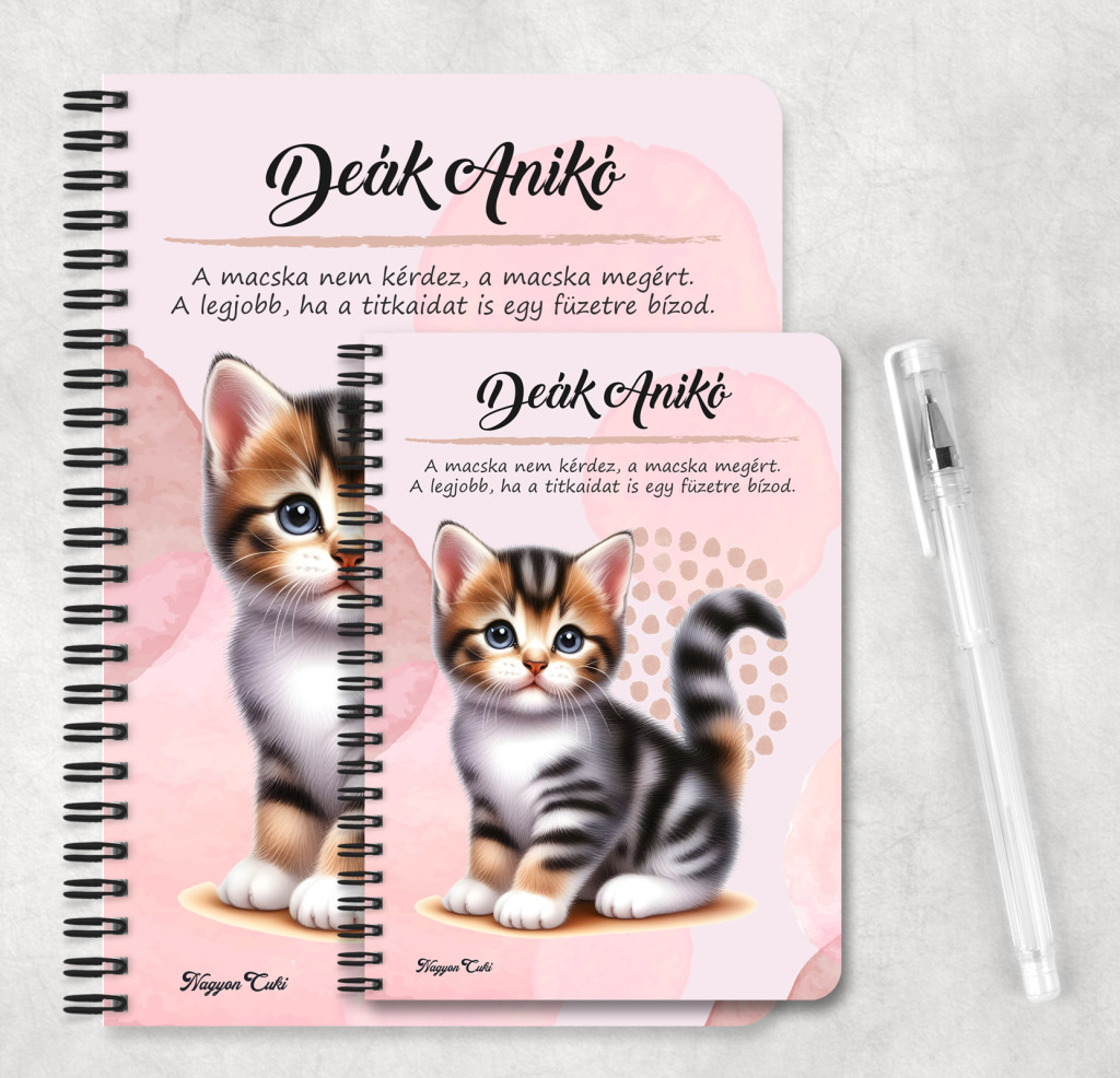 - Gazdiknak: Akik büszkén viselnék a cicájuk nevét egy ilyen cuki füzeten.