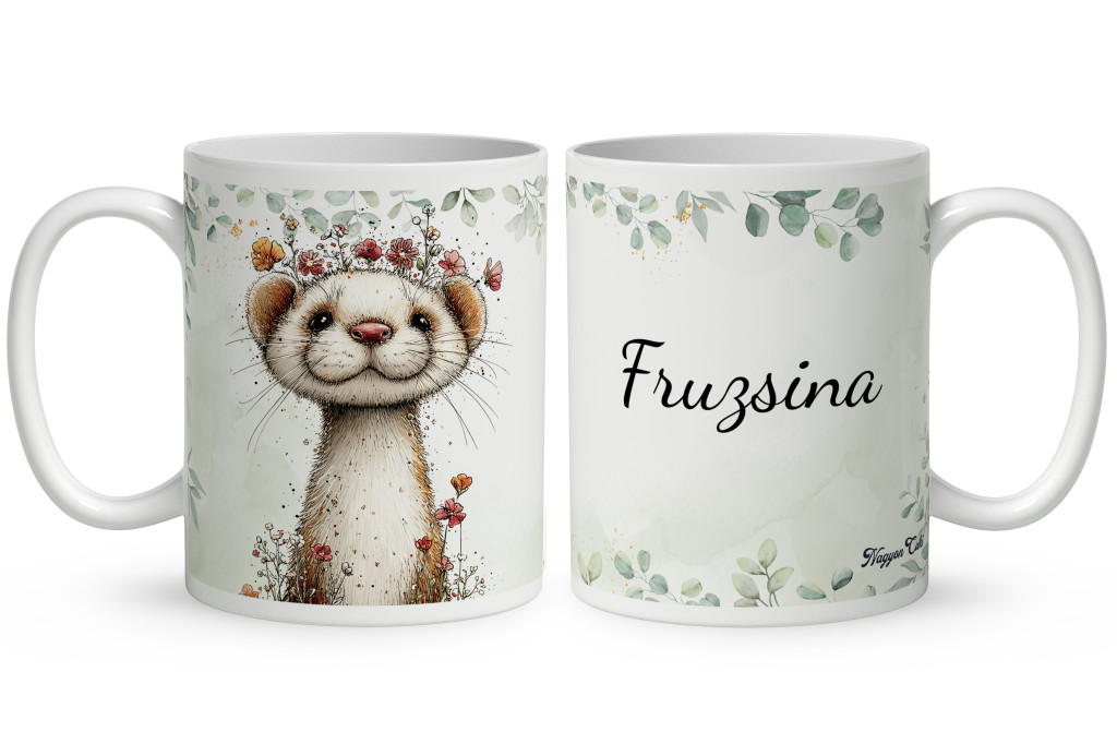 Névvel kérhető - Tündéri hermelin, a kecses felfedező mintás Bögre | Személyes ajándék | nagyoncuki.hu
