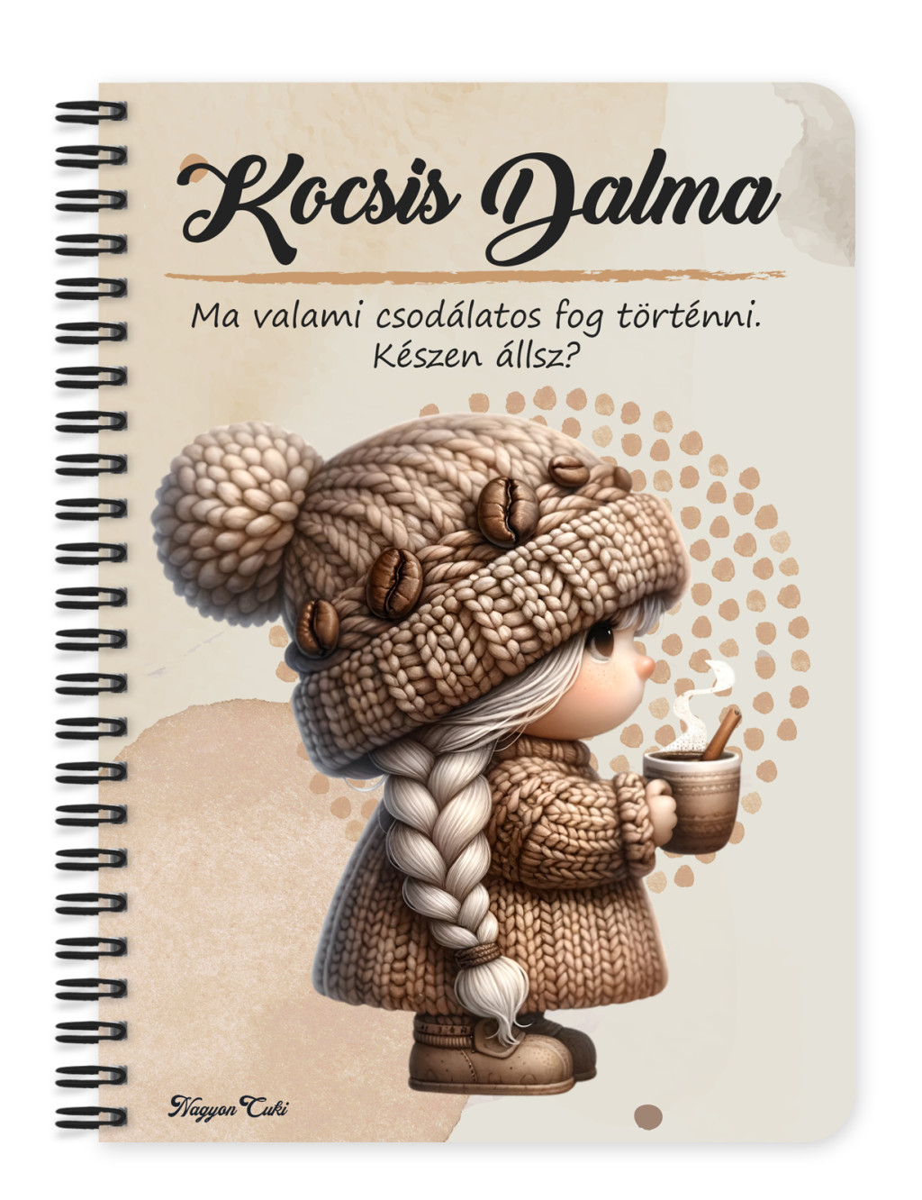 Képzeld el, hogy a reggeli kávéd illata mellett ott lapul az asztalodon egy végtelenül cuki, személyre szabott füzet, aminek a borítóján a te neved és egy neked szóló, inspiráló üzenet köszönt! Ez a kávés manó mintás füzet nem csupán egy jegyzetfüzet – ő egy vidám társ a mindennapokhoz, egy motivációs lökés a borús reggeleken, és egy igazán szívhez szóló, egyedi ajándék minden kávérajongónak.