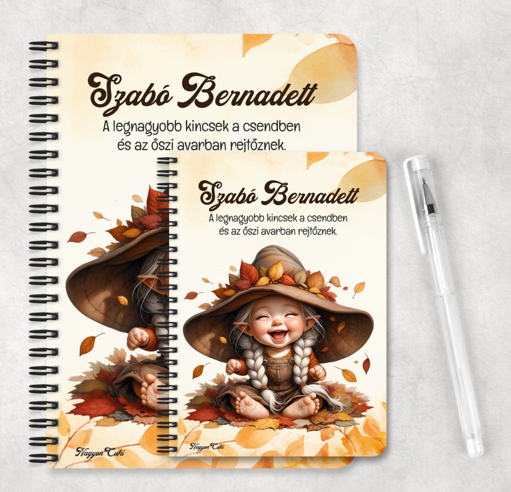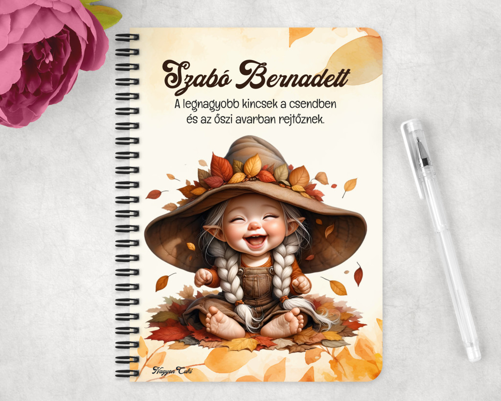 Személyre szabható - Tündéri őszi manó mintás füzet mintás Füzet | Egyedi Ajándék Nőknek & Személyes Napló | nagyoncuki.hu