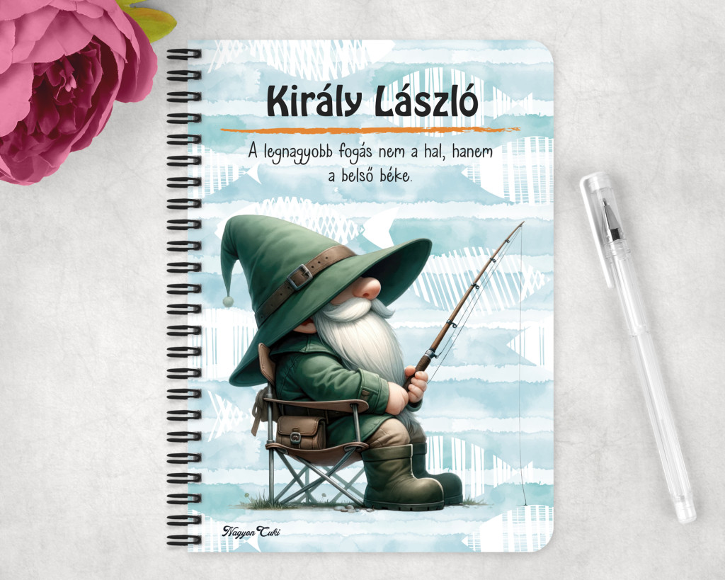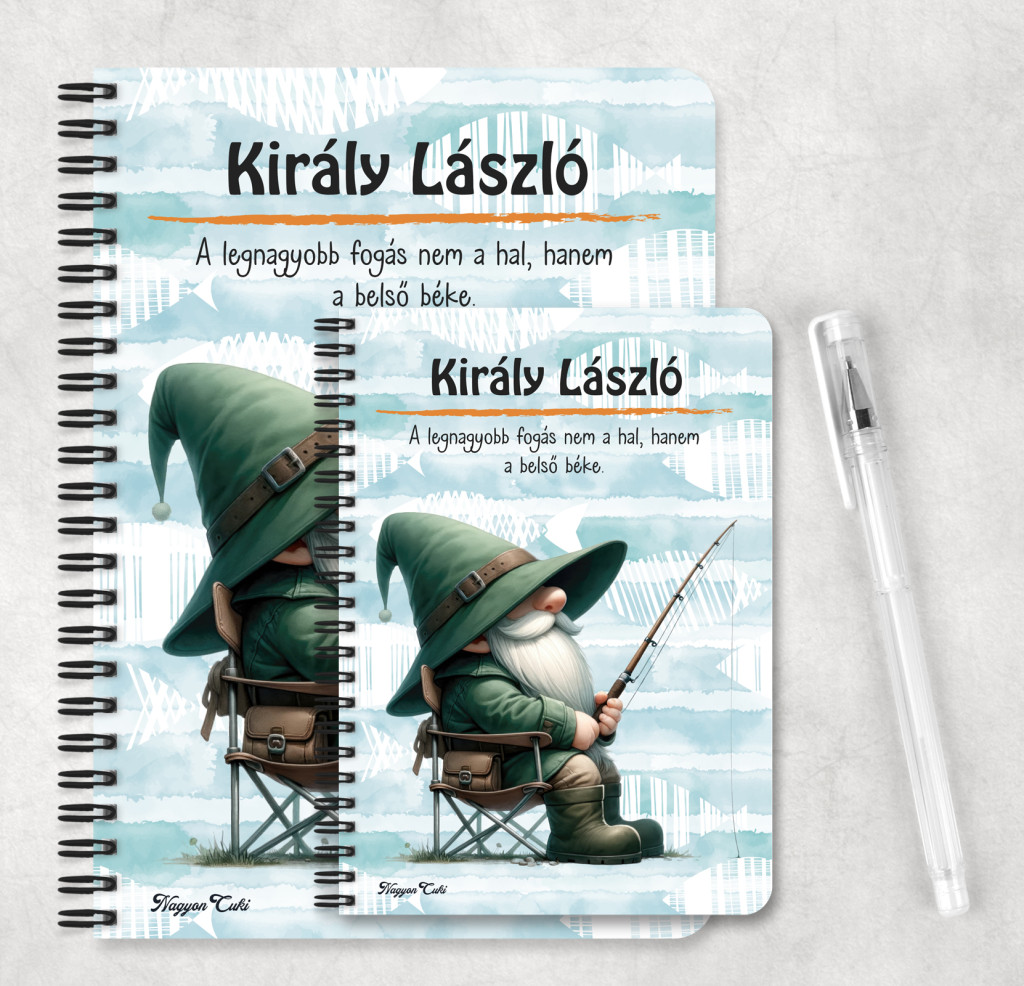 Névvel & Idézettel Kérhető Türelmes horgász manó mintás Füzet | Legjobb ajándék Horgászoknak | nagyoncuki.hu