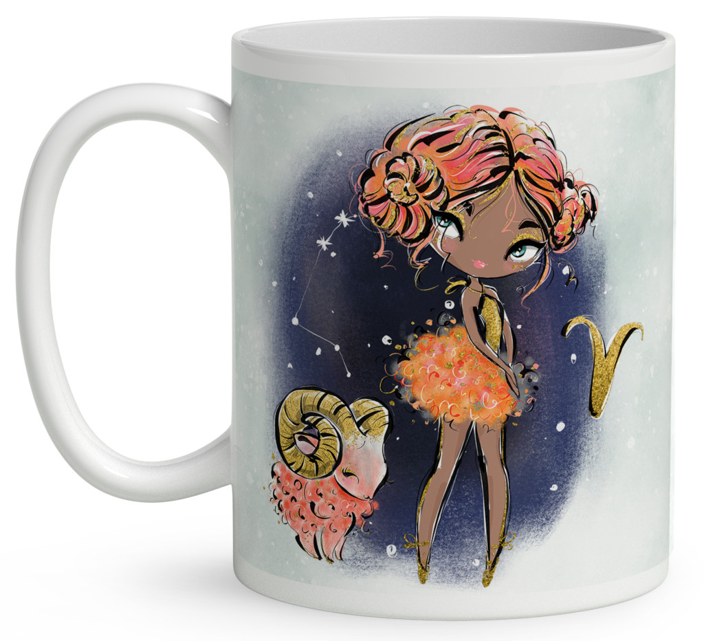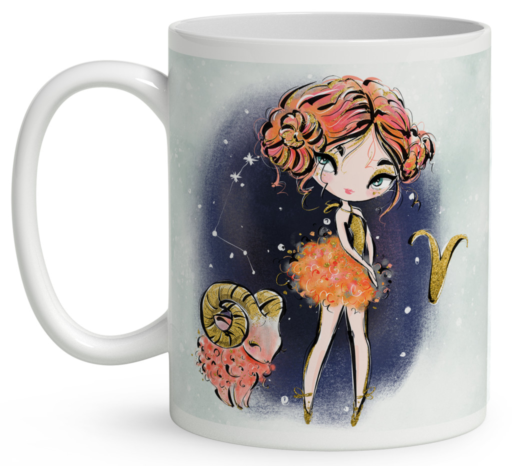 Személyre szabható - Vörös hajú Csini Kos lány mintás Zodiákus Bögre | Egyedi Horoszkópos Ajándék a Csillogás jegyében | nagyoncuki.hu