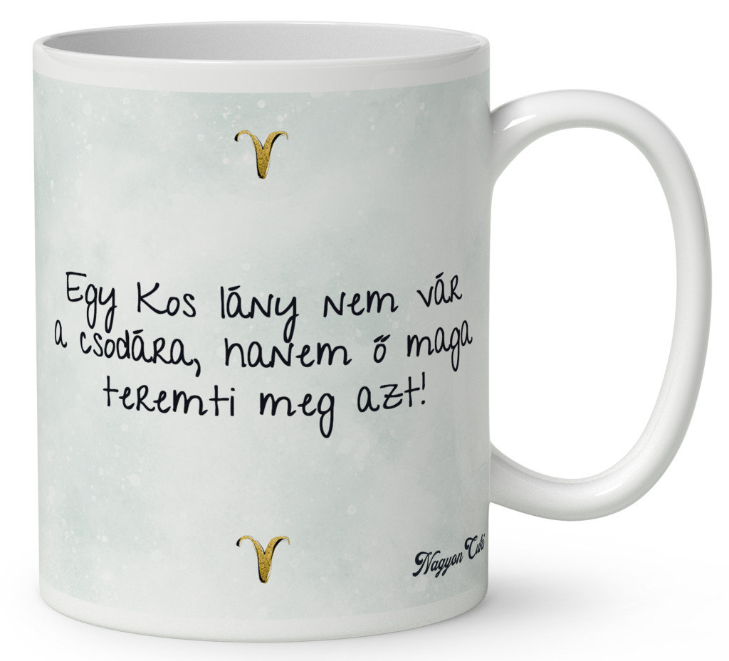 Ezt a vibráló, stílusos és „csili-vili” életérzést zártuk ebbe a Csini Kos lányos bögrébe. Ez nem egy egyszerű ajándéktárgy. Ez egy elismerő mosoly a reggeli kávé mellé. Amikor a tulajdonosa a kezébe veszi ezt a bögrét, és meglátja rajta a saját karakterét, a saját nevét vagy a kedvenc idézetét, tudni fogja:"Különleges vagyok, és valaki pontosan ilyennek szeret engem.".