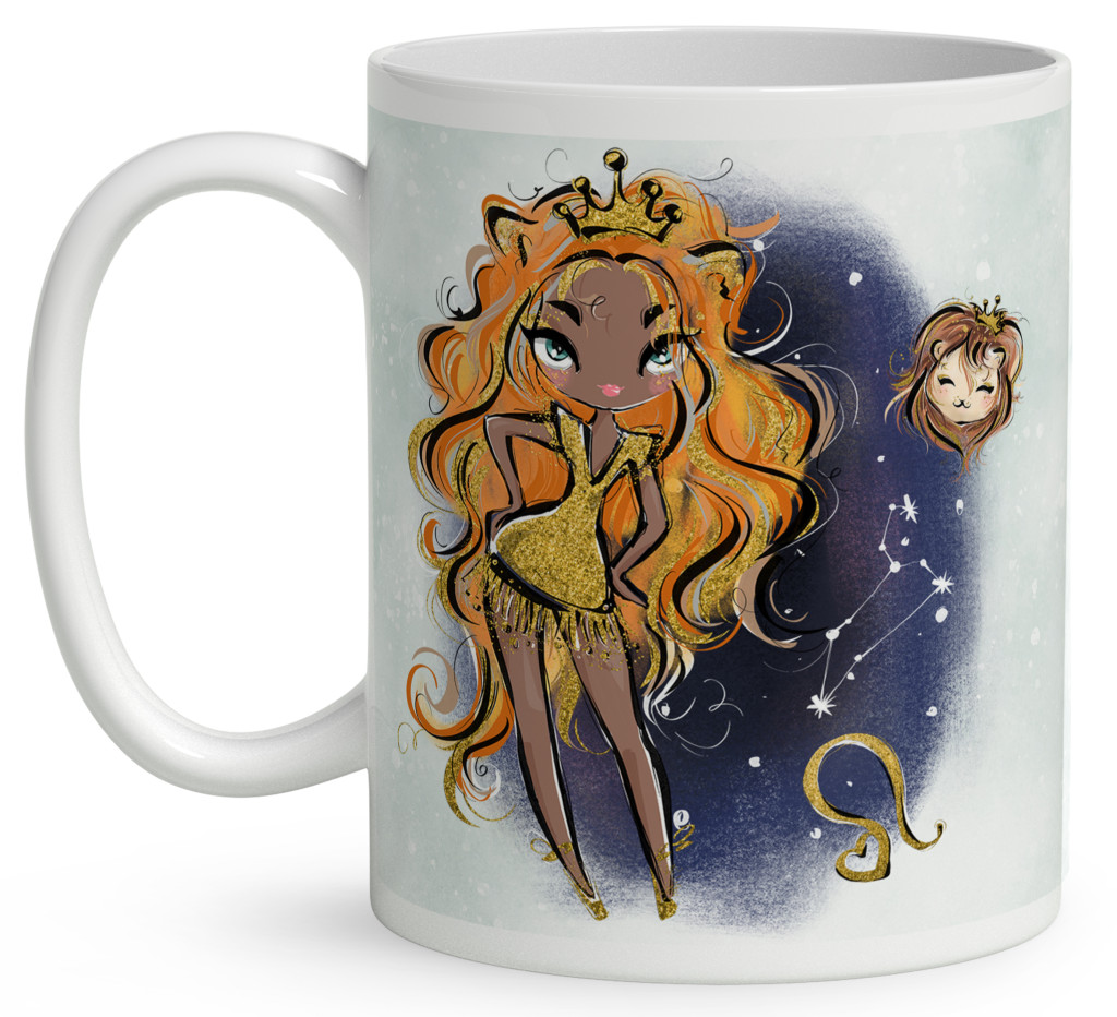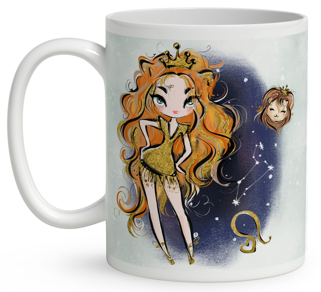 Személyre szabható - Vörös hajú Csini Oroszlán lány mintás Zodiákus Bögre | Egyedi Horoszkópos Ajándék a Csillogás jegyében | nagyoncuki.hu