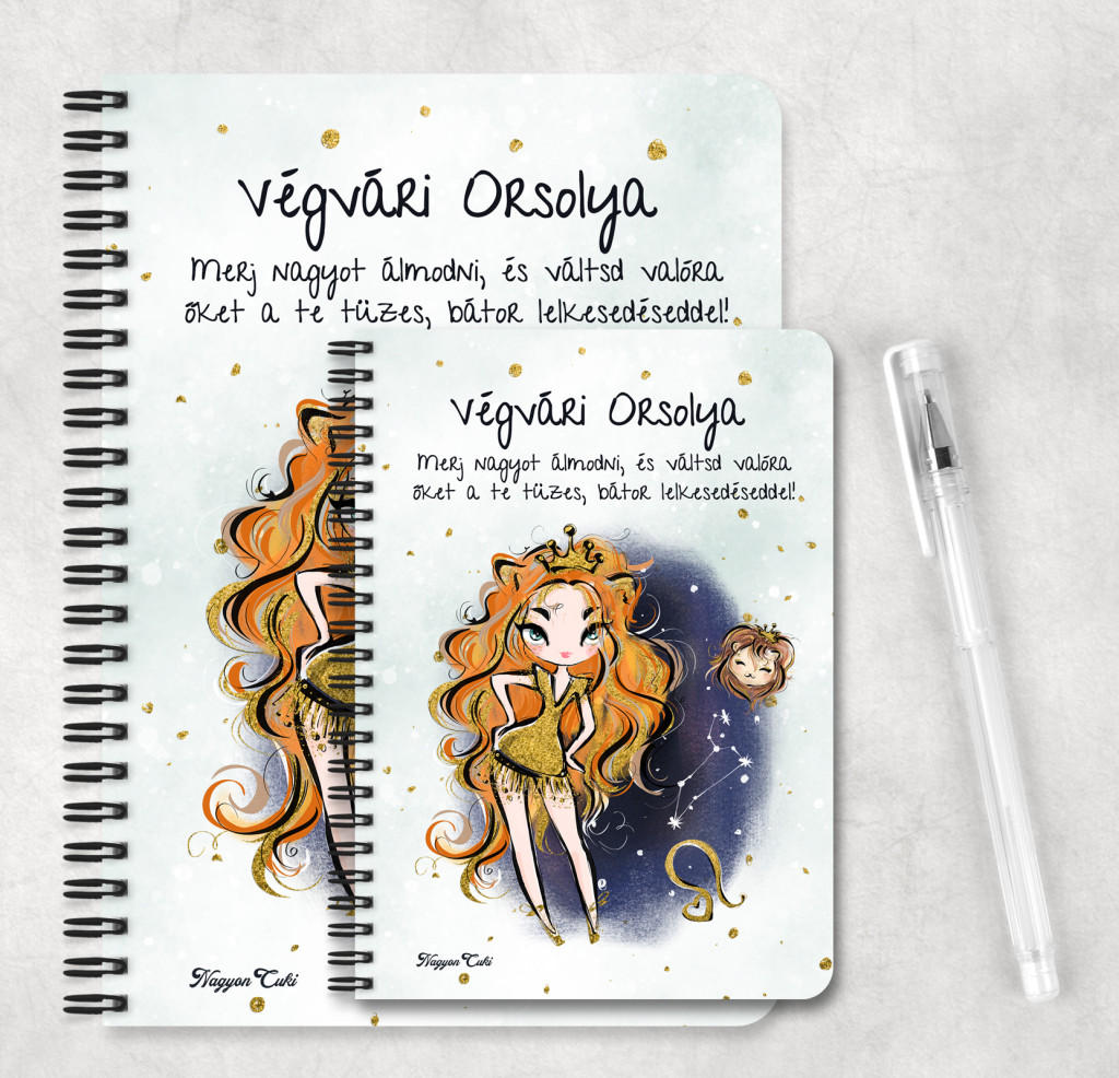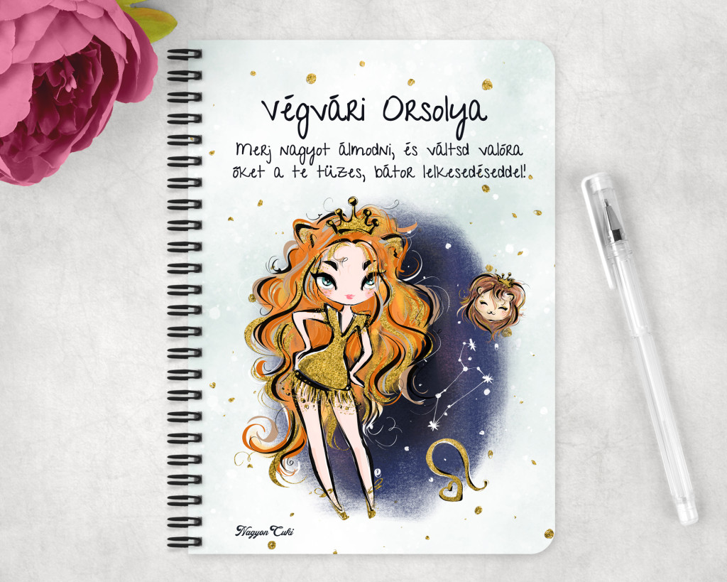 Miért válaszd ezt a névre szóló csini Oroszlán lány mintás füzetet?