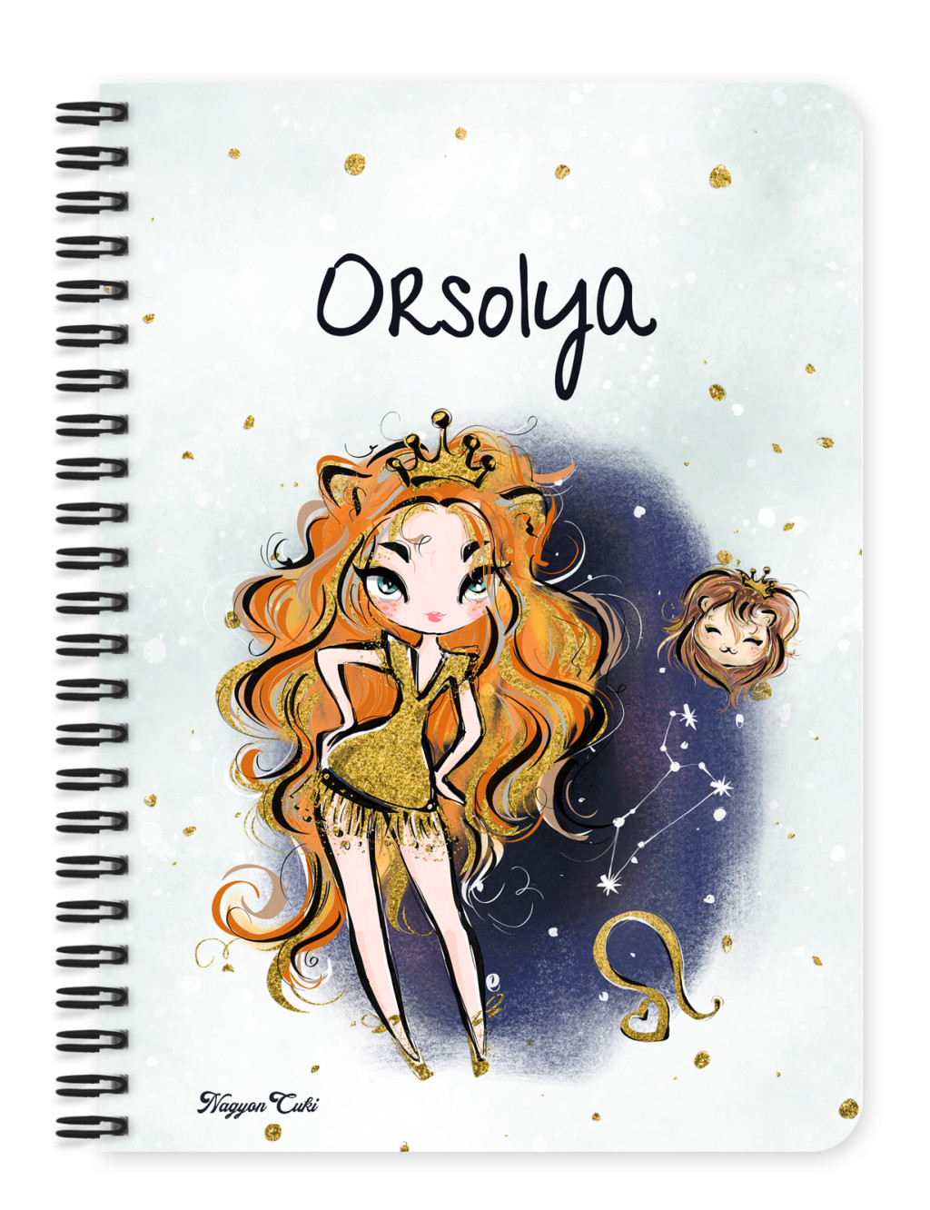 Személyre szabható - Vörös hajú Csini Oroszlán lány mintás Zodiákus Füzet | Egyedi Horoszkópos Ajándék & Névre szóló Jegyzetfüzet | nagyoncuki.hu